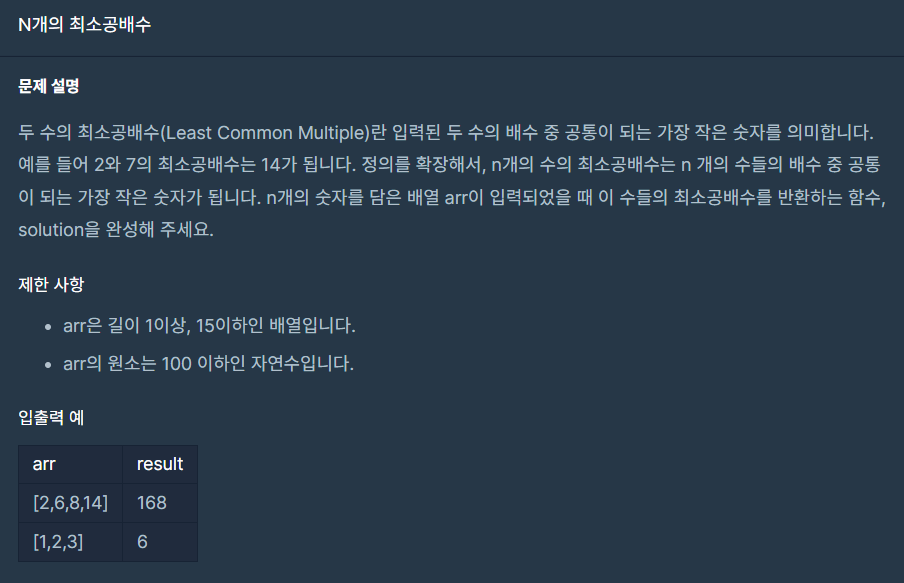- ....arr[arr.length-1]까지의 최소공배수를 구해 해당 값을 return 합니다.