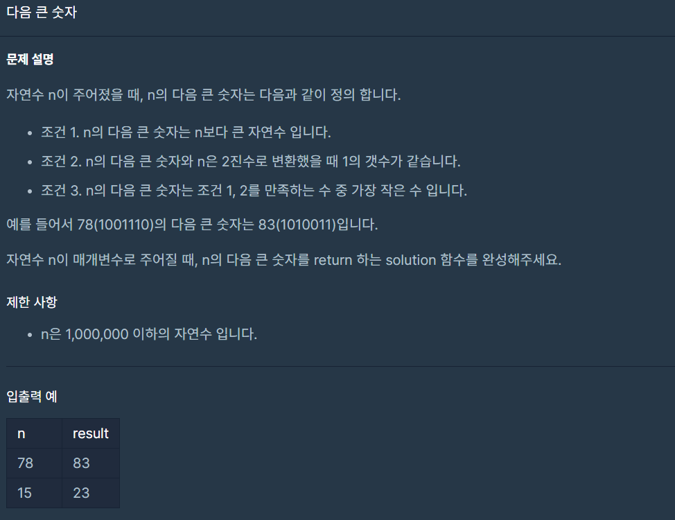 - n을 1씩 증가하면서 입력으로 주어진 n과 1의 개수가 같아질 때까지 찾는다.