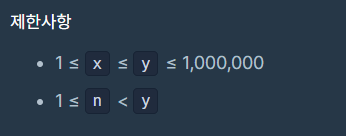 (* 여기서 주의해야할 점은 now [0]+n, now [0]*2, now [0]*3 이 y를 넘거나, 최소 연산 횟수를 구하는 것이므로 이미 연산했던 값이면 Queue에 넣지 않습니다.)