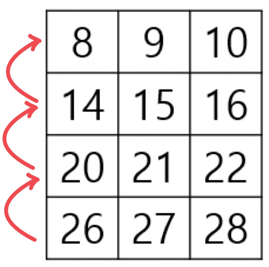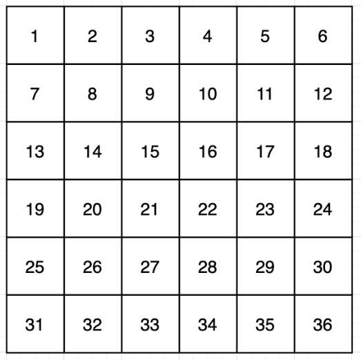 rows x columns 크기의 행렬이 있다. 행렬에는 1부터 rows x columns까지의 숫자가 한 줄씩 순서대로 적혀있습니다.