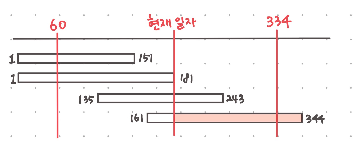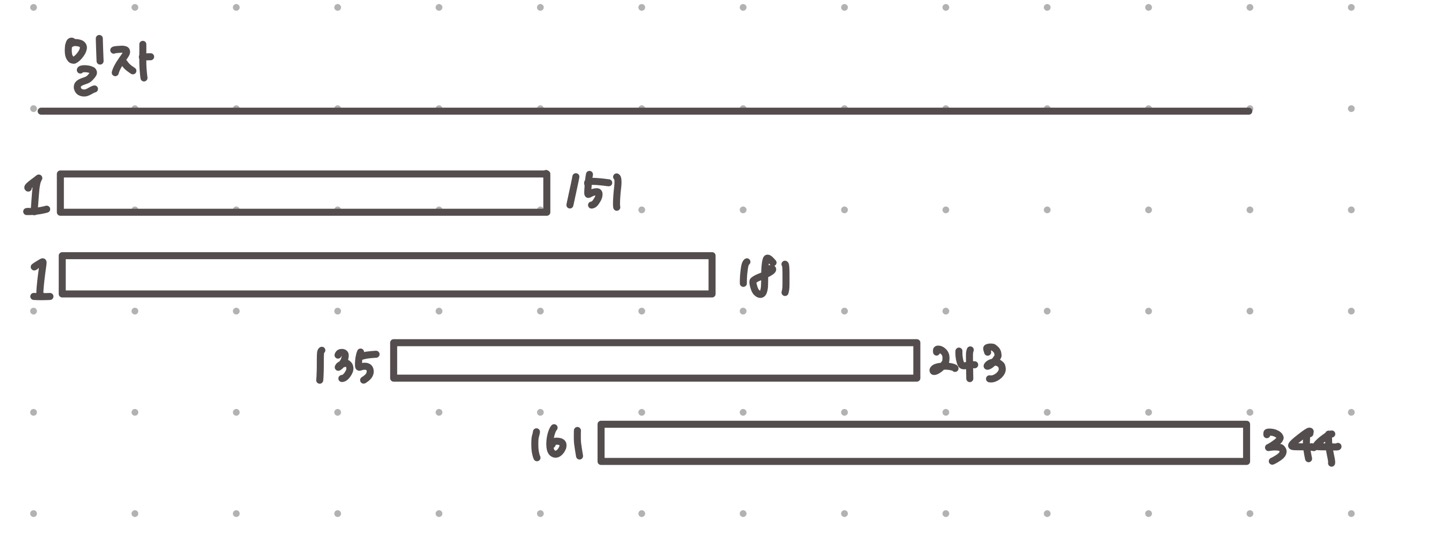 여기서 사용되는 날짜를 모두 일수를 만들어 계산하기 편하게 만듭니다.