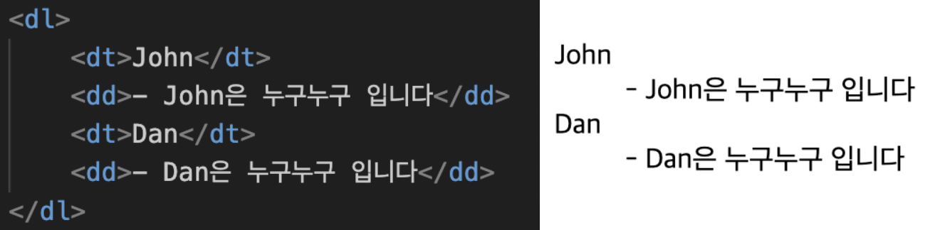 <dl>: 목록의 시작을 정의합니다.