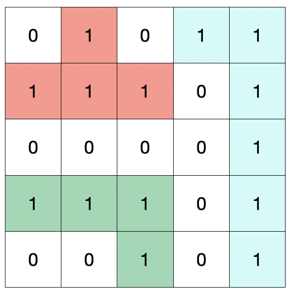 - 마을의 행과 열을 차례대로 돌면서 1을 만나면, 그 집과 상하좌우로 연결된 모든 집들을 탐색해 줍니다.